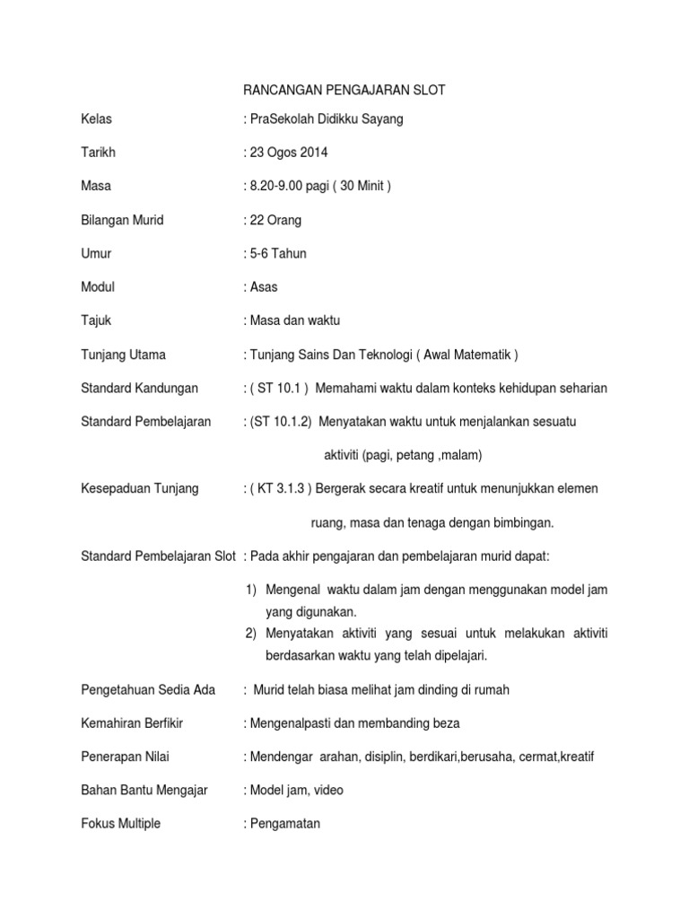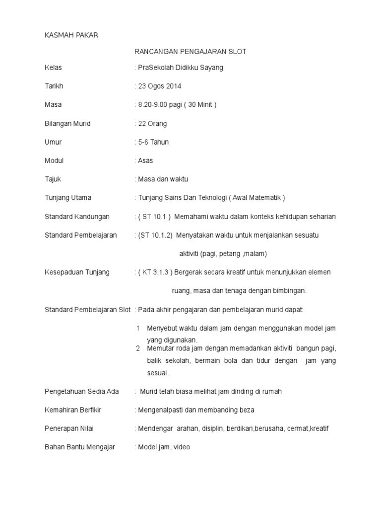Doc Penerangan Rancangan Mengajar Prasekolah Berdasarkan Kspk Marhamah Abu Zahar Academia Edu