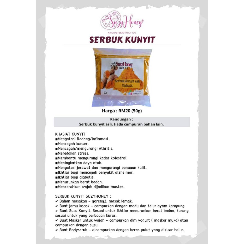 Ready Stock Serbuk Kunyit Masker Wajah Bodyscrub Jamu Kocok Dan Bahan Masakan By Suzy Honey Herbs Shopee Malaysia