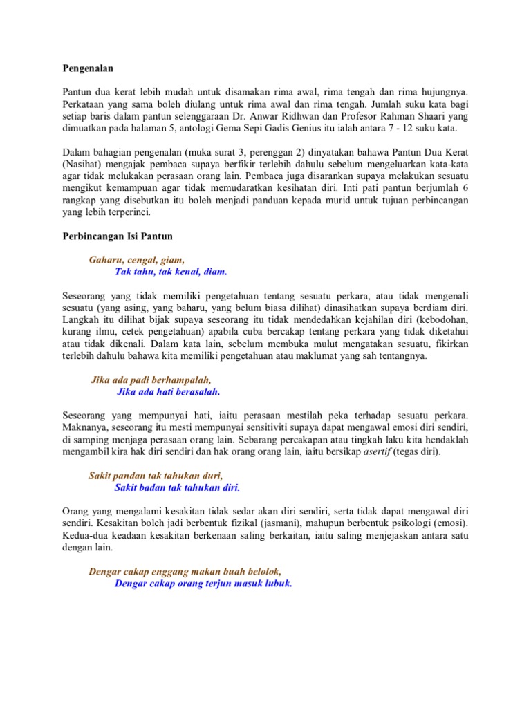 Doc Pantun 2 Kerat Nasihat Nurull Sya Academia Edu