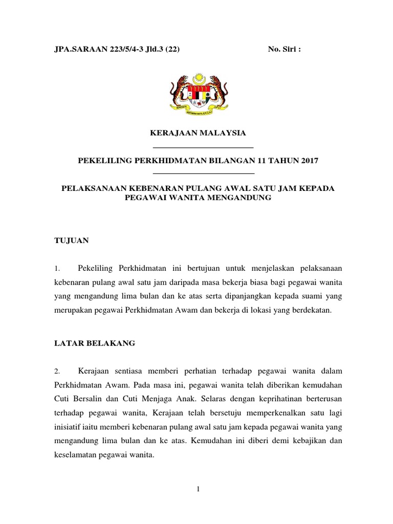 Pykamohamad A Twitter Seperti Yg Dijanjikn Dlm Bajet 2018 Pekeliling Perkhidmatan Bil 11 Tahun2017 Pelaksanaan Kebenaran Pulang Awal 1 Jam Kpd Pegawai Wanita Mengandung Suami Yg Bkrja Di Lokasi Berdktan Pekeliling Ini Telah Dimuat Naik K