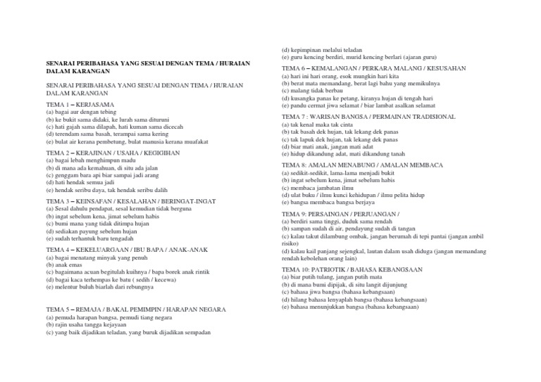 Senarai Peribahasa Yang Sesuai Dengan Tema