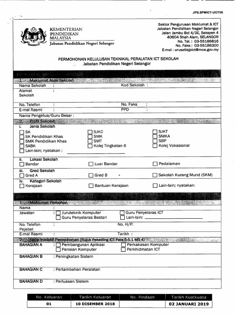 Borang Permohonan Peralatan Ict Sekolah 1
