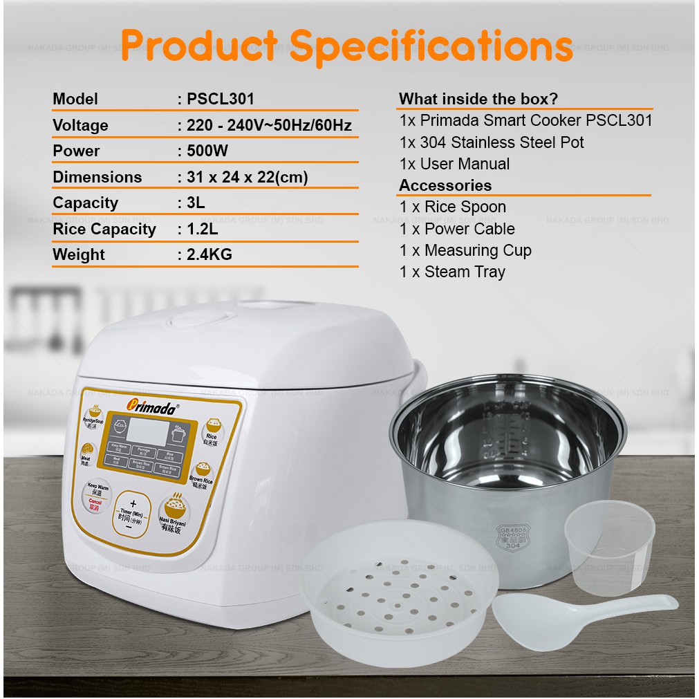 Primada Smart Rice Cooker Pscl301 Shopee Malaysia