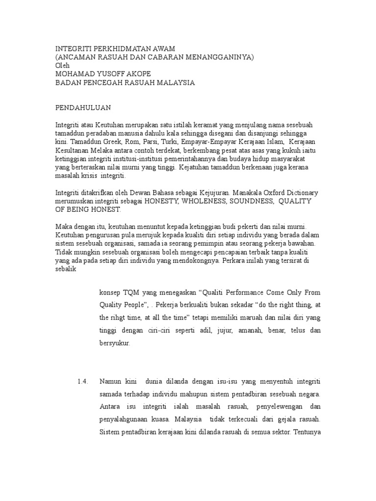 Rasuah Di Kalangan Penjawat Awam Pdf